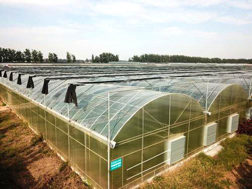 4、采用吸湿性良好的保温幕材料。透湿和吸湿性良好的保温幕材料,如无纺布能够阻止棚内表面结露,并可防止露水落到植株上,从而降低连栋温室空气湿度。