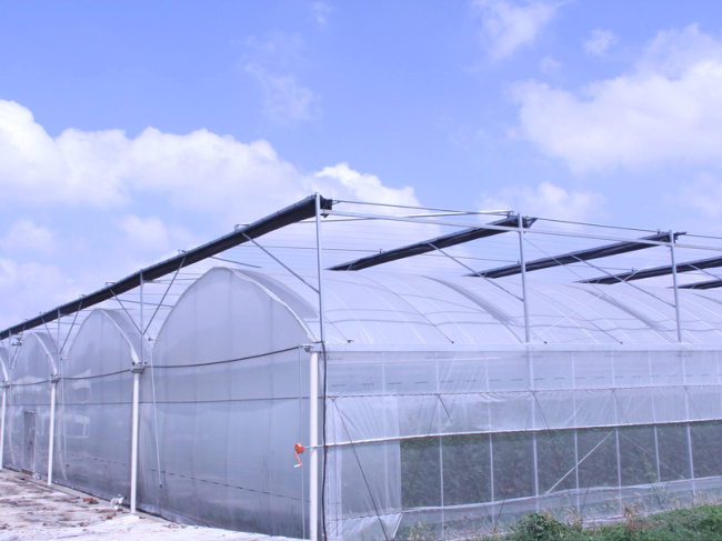 4、采用吸湿性良好的保温幕材料。透湿和吸湿性良好的保温幕材料,如无纺布能够阻止棚内表面结露,并可防止露水落到植株上,从而降低连栋温室空气湿度。