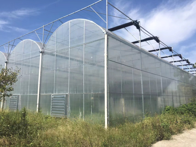 4、采用吸湿性良好的保温幕材料。透湿和吸湿性良好的保温幕材料,如无纺布能够阻止棚内表面结露,并可防止露水落到植株上,从而降低连栋温室空气湿度。