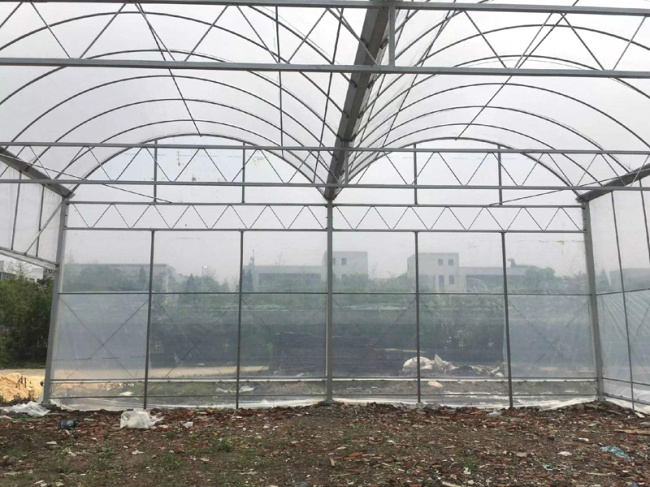 4、采用吸湿性良好的保温幕材料。透湿和吸湿性良好的保温幕材料,如无纺布能够阻止棚内表面结露,并可防止露水落到植株上,从而降低连栋温室空气湿度。