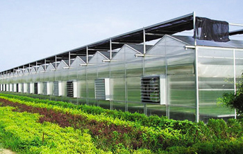 阳光板温室多为文洛型(也可以采用圆拱形),多采用一跨多顶,外形现代,结构稳定,形式美观大方,视觉流畅,保温性能卓越,透光率适中,多雨槽,大跨度,排水量大,抗风能力强,适合于风力与雨量较大地区。阳光板温室,具有透光度好,热传导系数低,由于阳光板分量轻,寿命长,拉伸强度大,通过简单的钢骨结构就能满足抗风、抗雪的要求,并且寿命长,美观大方,减少重复建设及投资,是替代原始的塑料薄膜温室与玻璃温室的首选产品•
